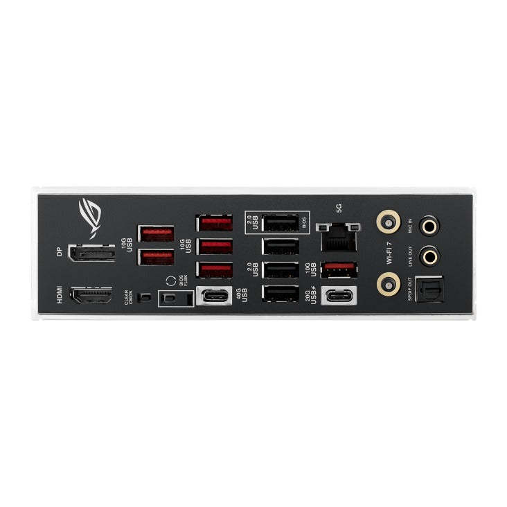 | Back Panel I/O | USB4, USB 20Gbps, USB 10Gbps, USB 2.0, DisplayPort, HDMI, Wi-Fi, Ethernet, Audio Jacks, Optical S/PDIF, BIOS FlashBack, Clear CMOS |