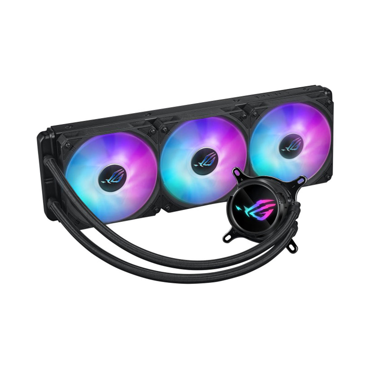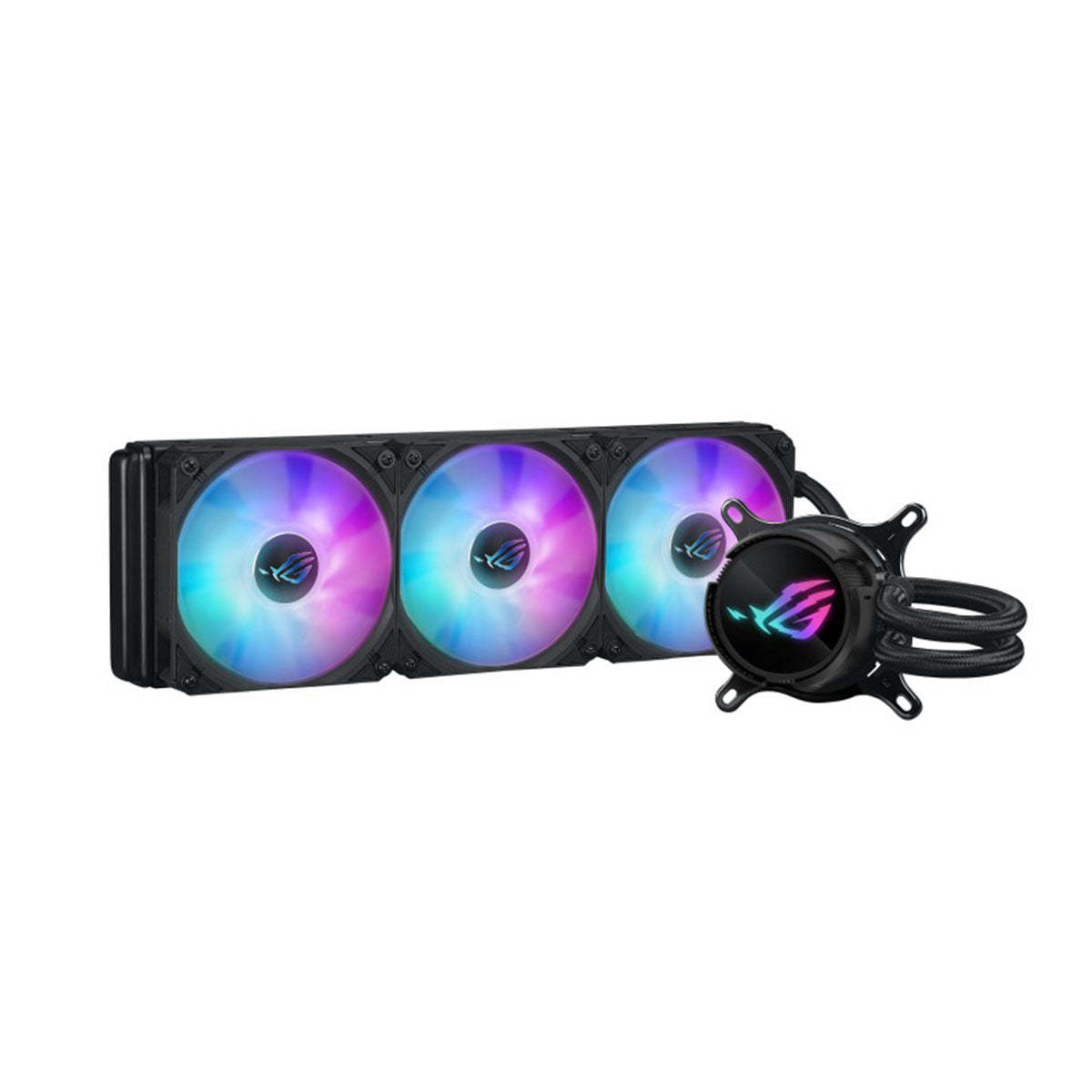 Achieve optimal performance and stunning aesthetics with the ROG Strix LC III 360 ARGB, featuring the latest generation Asetek’s new Gen7 v2 pump and ROG ARGB radiator fans. Effortlessly tackle the heat generated by AMD Ryzen™ and Intel® Core™ processors to unleash limitless power. Enjoy enhanced installation flexibility with a 360° rotatable water block that accommodates various mounting options. Explore a spectrum of Aura lighting modes to elevate the visual appeal of your gaming build. And embrace the perfect blend of efficiency and exquisite design for an